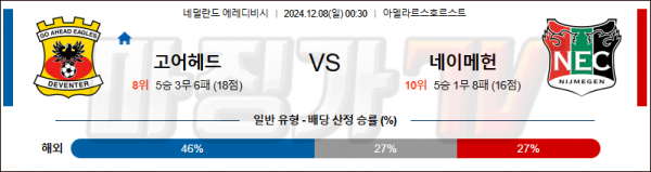 12월 8일 에레디비지에 고어헤드 네이메헌 해외축구분석 스포츠분석
