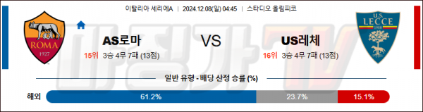 12월 8일 세리에 A AS 로마 레체 해외축구분석 스포츠분석