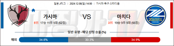 12월8일 J리그 1 가시마 마치다 아시아축구분석 스포츠분석