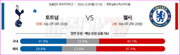 12월 9일 EPL 토트넘 홋스퍼 첼시 해외축구분석 스포츠분석