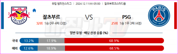 12월 11일 UEFA 챔피언스리그 레드불 잘츠부르크 파리 생제르맹 해외축구분석 스포츠분석