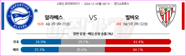 12월 16일 라리가 알라베스 아틀레틱 빌바오 해외축구분석 스포츠분석