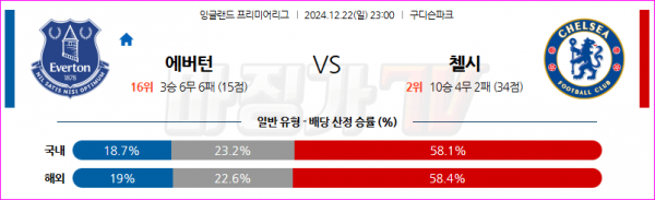 12월 22일 EPL 에버턴 첼시 해외축구분석 스포츠분석