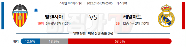 1월 4일 라리가 발렌시아 레알 마드리드 해외축구분석 스포츠분석