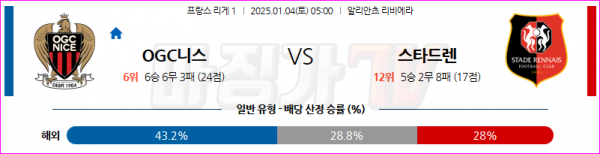 1월 4일 리그앙 OGC 니스 스타드 렌 FC 해외축구분석 스포츠분석