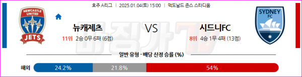 1월 4일 호주 1부 뉴캐슬 제츠 FC 시드니 FC 아시아축구분석 스포츠분석