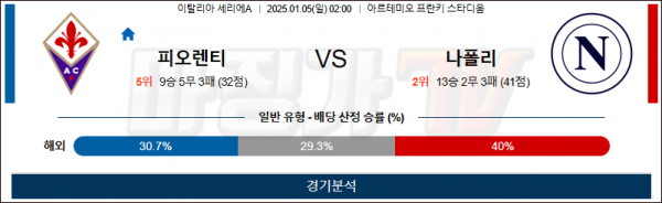 1월 5일 세리에A 피오렌티나 나폴리 해외축구분석 스포츠분석