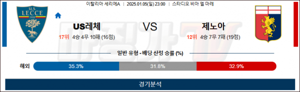 1월 5일 세리에A US레체 제노아 해외축구분석 스포츠분석
