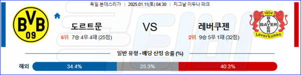 2025 01월 11일 보루시아 도르트문트 레버쿠젠 분데스리가 분석