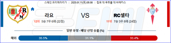 2025 01월 11일 라요 바예카노 셀타비고 라리가 분석
