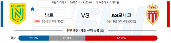 2025 01월 11일 FC 낭트 AS 모나코 리그앙 분석