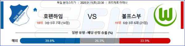 2025 01월 11일 호펜하임 볼프스부르크 분데스리가 분석