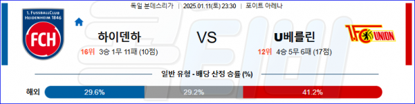 2025 01월 11일 하이덴하임 우니온베를린 분데스리가 분석