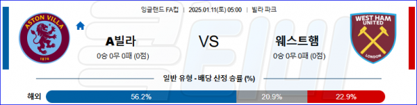 2025 01월 11일 아스톤 빌라 웨스트햄 잉글랜드FA컵 분석