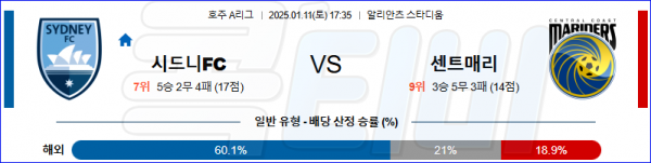 2025 01월 11일 시드니FC 센트럴 코스트FC 호주A리그 분석
