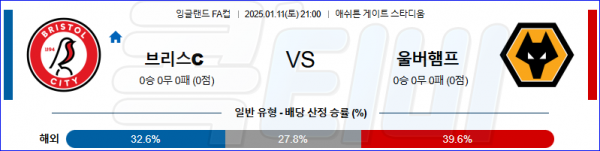 2025 01월 11일 브리스톨 시티 FC 울버햄튼 잉글랜드FA컵 분석