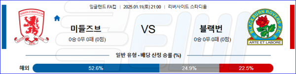 2025 01월 11일 미들즈브러 FC 블랙번 로버스 잉글랜드FA컵 분석