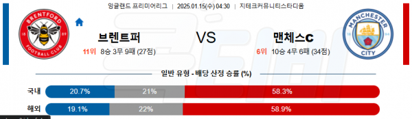 2025 01월 15일 브렌트퍼드 FC 맨체스터 시티 프리미어리그 분석