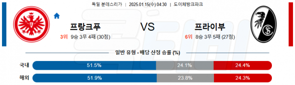 2025 01월 15일 프랑크푸르트 SC 프라이부르크 분데스리가 분석