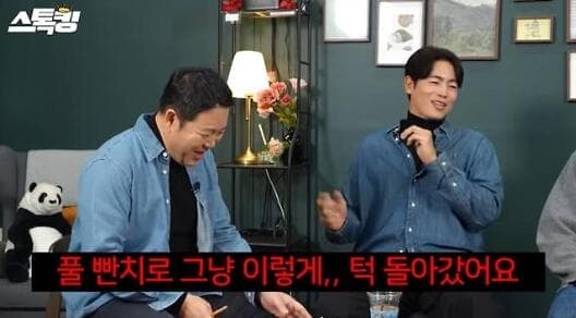 이태양은 "(훈련 중) 아파가지고 조금 절뚝였는데, 모 지도자분이 마음에 안 드셨는지 풀 펀치로 귓방망이 다섯 방을 때렸다"며 "턱이 이렇게 툭 돌아갔다"고 털어놨다.