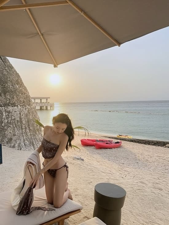 공개된 사진 속 이솔이는 브라운 톤 패턴의 튜브톱 수영복을 입고 있다. 어깨 라인이 드러나는 상의는 쇄골과 상체 라인을 자연스럽게 강조하며, 하의는 끈 디테일로 슬림한 허리선과 균형 잡힌 몸매를 돋보이게 한다. 선베드에 앉아 자연스럽게 포즈를 취한 이솔이는 군살 없는 보디라인을 자랑하며, 브라운 톤 비치웨어와 어우러져 차분한 분위기를 연출했다.