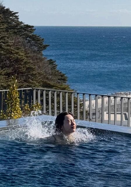또 다른 사진에서 나나는 수영장에서 수영을 즐기고 커다란 목도리를 얼굴에 두르는 등 여유로운 일상을 즐기고 있는 모습이다.