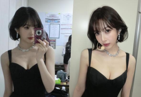 공개된 사진 속 조이는 가슴 라인이 깊게 파인 블랙 끈 미니 드레스를 입고 화려한 다이아몬드 목걸이와 귀걸이를 착용해 고급스러우면서도 섹시한 분위기를 자아냈다. 대기실로 보이는 장소에서 거울 셀카를 촬영 중인 조이는 카메라를 응시하며 매혹적인 눈빛을 발산하는가 하면, 무대용 마이크를 착용한 채 은근한 미소를 지으며 팬심을 저격했다. 특히 군살 하나 없는 탄탄한 어깨 라인과 대비되는 볼륨감 넘치는 몸매는 조이 특유의 건강하고 고혹적인 매력을 한층 부각시켰다.