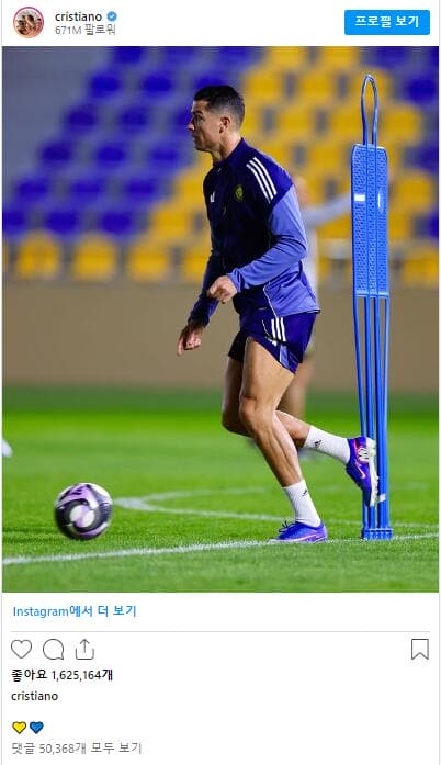 호날두는 훈련 중 찍은 사진을 공개하며, 두 개의 하트 이모티콘을 함께 올렸다. 이 하트는 알 나스르의 팀 색깔을 상징하는데, 그가 정상적으로 훈련을 재개했으며, 클럽에 대한 충성심은 여전히 변함없다는 점을 확실히 드러냈다.
