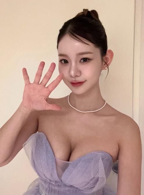 최근 공개된 사진 속 맹승지는 파스텔톤 튜브톱 드레스를 입고 등장했다. 그는 과감한 쇄골 라인과 볼륨감 넘치는 실루엣을 드러내며 단숨에 시선을 집중시켰다. 은은한 조명 아래 드러난 매끈한 피부결과 또렷한 이목구비는 ‘실사판 인형’ 느낌을 자아냈다.