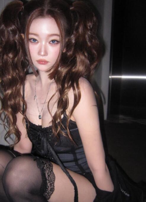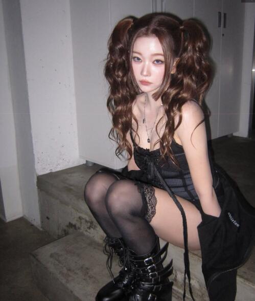 공개된 사진 속 츠키는 웨이브가 풍성하게 살아 있는 트윈테일 헤어스타일에 블랙 컬러 중심의 스타일링으로 몽환적이면서도 관능적인 무드를 동시에 연출했다. 특히 코르셋 형태의 란제리 스타일 톱, 레이스 디테일이 더해진 가터벨트, 시스루 스타킹이 어우러지며 하이패션과 란제리 무드를 결합한 감각적인 스타일링을 완성했다. 여기에 스트랩 디테일이 강조된 워커 부츠와 블랙 아우터를 매치해 강인하면서도 시크한 이미지를 더했다.