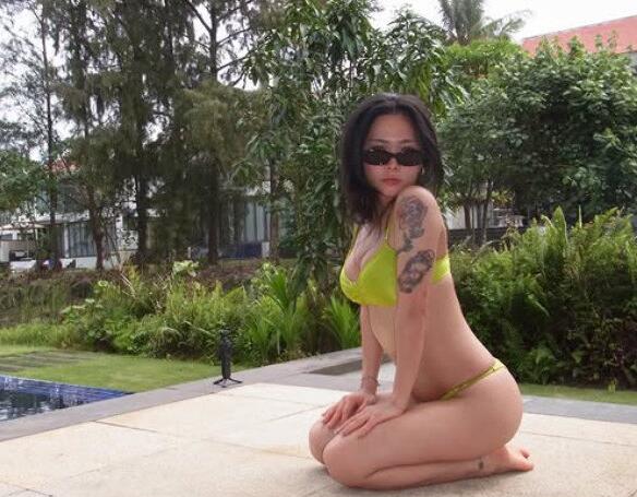 공개된 사진 속 허니제이는 푸른 자연을 배경으로 연두색 비키니를 입고 다양한 포즈를 취하며 여유로운 시간을 보내고 있다.