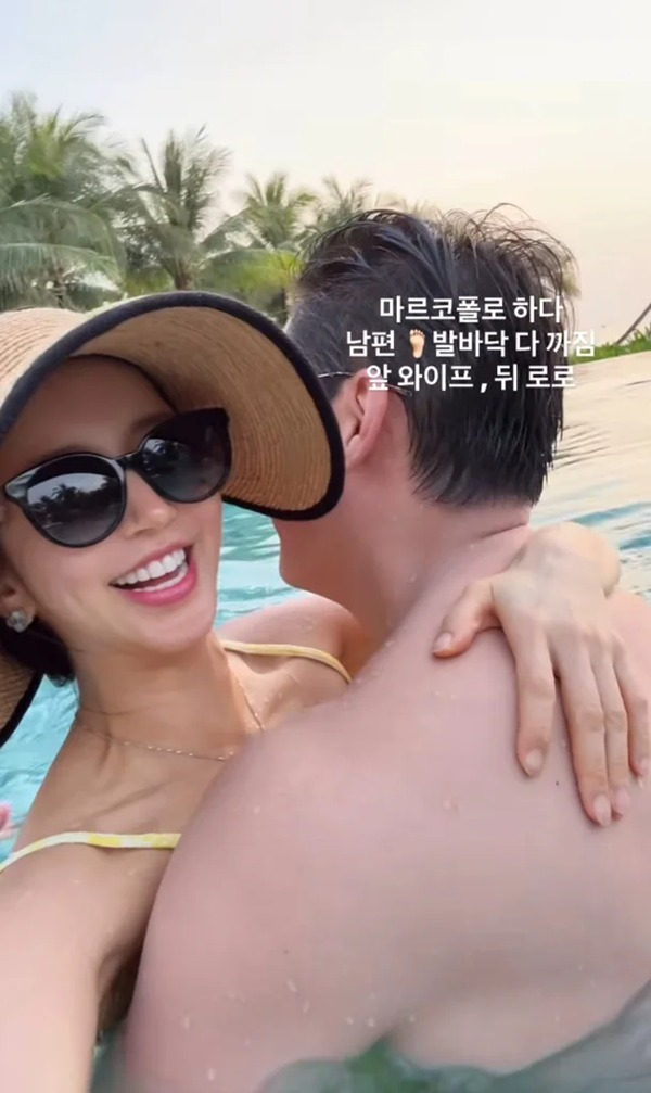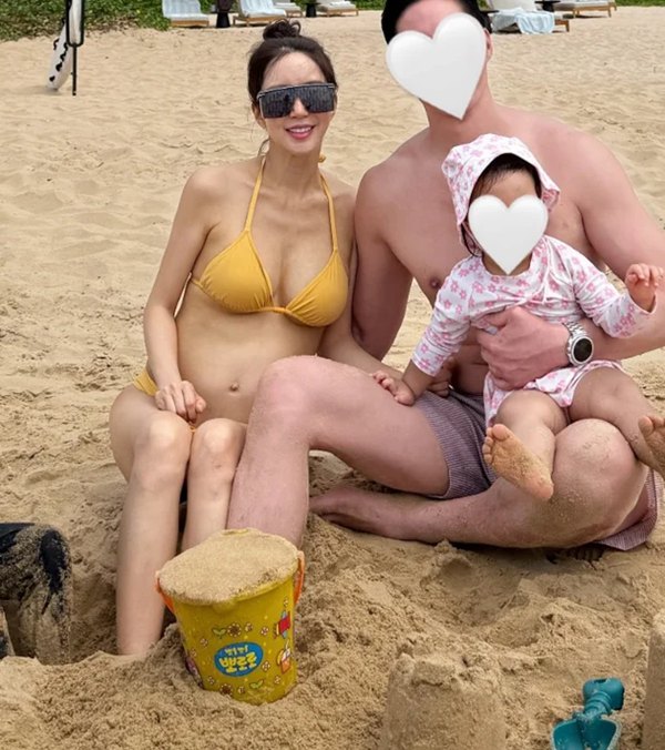 해변 모래사장에서는 남편 이필립, 딸과 나란히 앉아 환한 미소를 지었다. 또 다른 사진에서는 라운지 베드에 기대 음료를 든 채 카메라를 응시했다. 넓은 챙 모자와 선글라스로 완성한 휴양지 스타일이 분위기를 더했다.