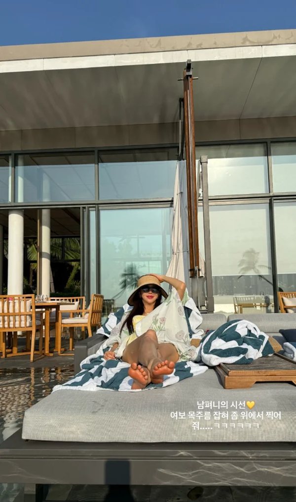 특히 그는 “남편의 시선”이라며 이필립이 직접 찍어준 사진을 공개했다. “여보 목주름 잡혀 좀 위에서 찍어줘”라는 재치 있는 멘트도 덧붙이며 부부의 유쾌한 분위기를 전했다.