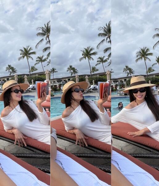 공개된 사진 속 김주희는 이국적인 풍경이 펼쳐진 수영장을 배경으로 갈색 비키니와 화이트 커버업 드레스, 세련된 선글라스를 매치해 감각적인 비치웨어를 선보였다.