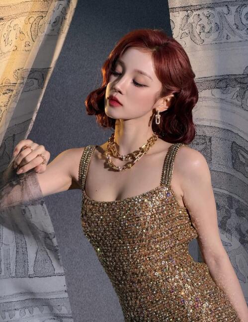공개된 사진 속 우기는 화려한 황금빛 드레스와 주얼리를 착용한 채 포즈를 취하고 있다. 화려한 장식보다 더 빛나는 우기의 비주얼이 눈길을 사로잡는다.