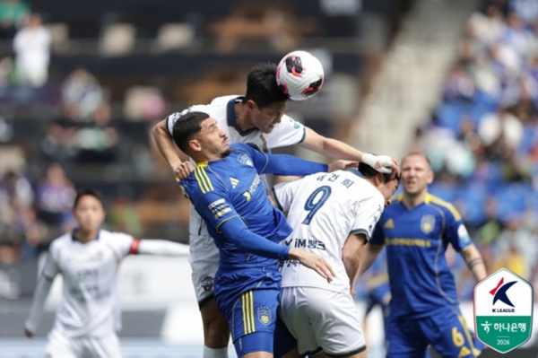22일 울산 문수축구경기장에서 열린 ‘하나은행 K리그1 2026’ 5라운드에서 울산 HD는 김천 상무와 득점 없이 비겼다. 이로 인해 개막 3연승을 질주하던 울산(승점 10)은 같은 시각 광주FC를 5-0으로 대파한 FC서울(승점 12)에 1위 자리를 내주고 리그 2위로 내려앉았다. 반면 김천(승점 5)은 개막 후 5경기 연속 무승부라는 진기록을 세웠다.