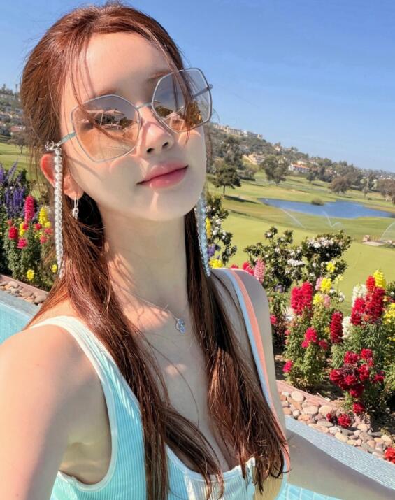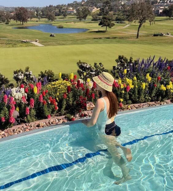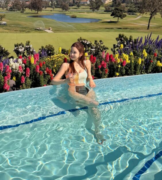공개된 사진 속 이다해는 푸른 잔디가 펼쳐진 골프장을 배경으로 수영장에 들어가 여유를 즐기는 모습이다.
