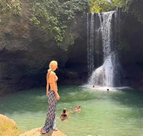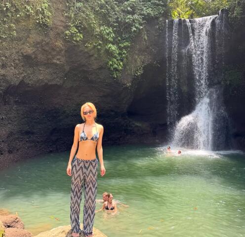 또 다른 사진에서는 자연 속 폭포를 배경으로 포즈를 취하며 색다른 매력을 드러냈다. 블랙 비키니와 패턴 팬츠를 매치한 스타일링으로 이국적인 무드를 완성, 여행지에서의 활기찬 에너지를 전했다. 거울 셀카에서는 장난기 가득한 표정으로 친근한 매력까지 더했다.