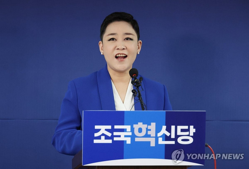 (서울=연합뉴스) 신준희 기자 = 가수 리아(본명 김재원)가 11일 여의도 조국혁신당 당사에서 열린 입당 환영식에서 인사말을 하고 있다. 2024.3.11
