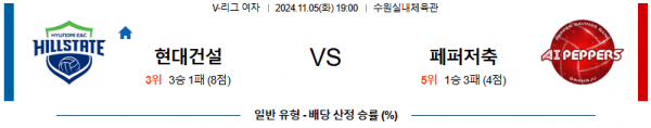 2024 11월 05일 현대건설 페퍼저축은행 V-리그(여) 분석