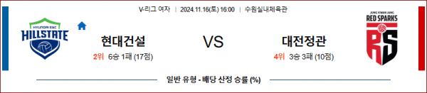 11월 16일 V-리그 (여) 현대건설 정관장 국내배구분석 스포츠분석