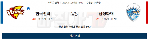 11월 26일 V-리그 한국전력 삼성화재 국내배구분석 스포츠분석
