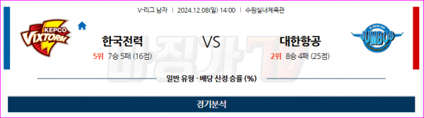 12월 8일 V-리그 한국전력 대한항공 국내배구분석 스포츠분석