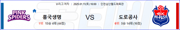 2025 01월 11일 흥국생명 한국도로공사 V-리그(여) 분석