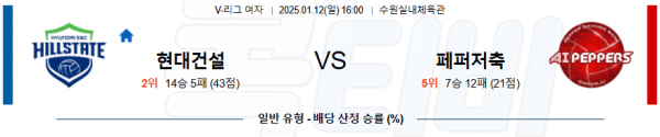 2025 01월 12일 현대건설 페퍼저축은행 V-리그(여) 분석